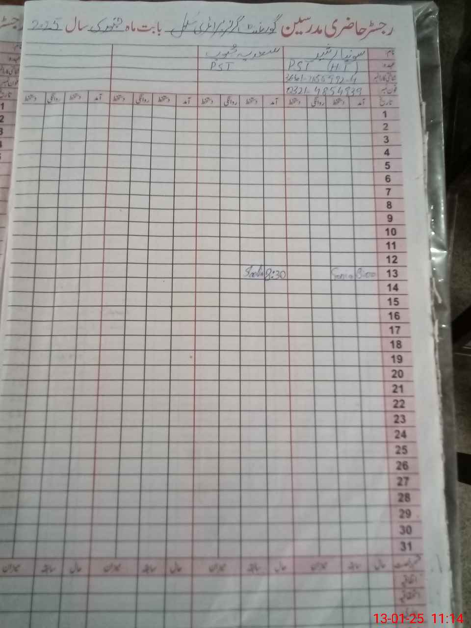 | Name: SO**** RA**** Designation: (School Headmaster's/Headmistress's) PST Phone/Cell Number: 03**** |