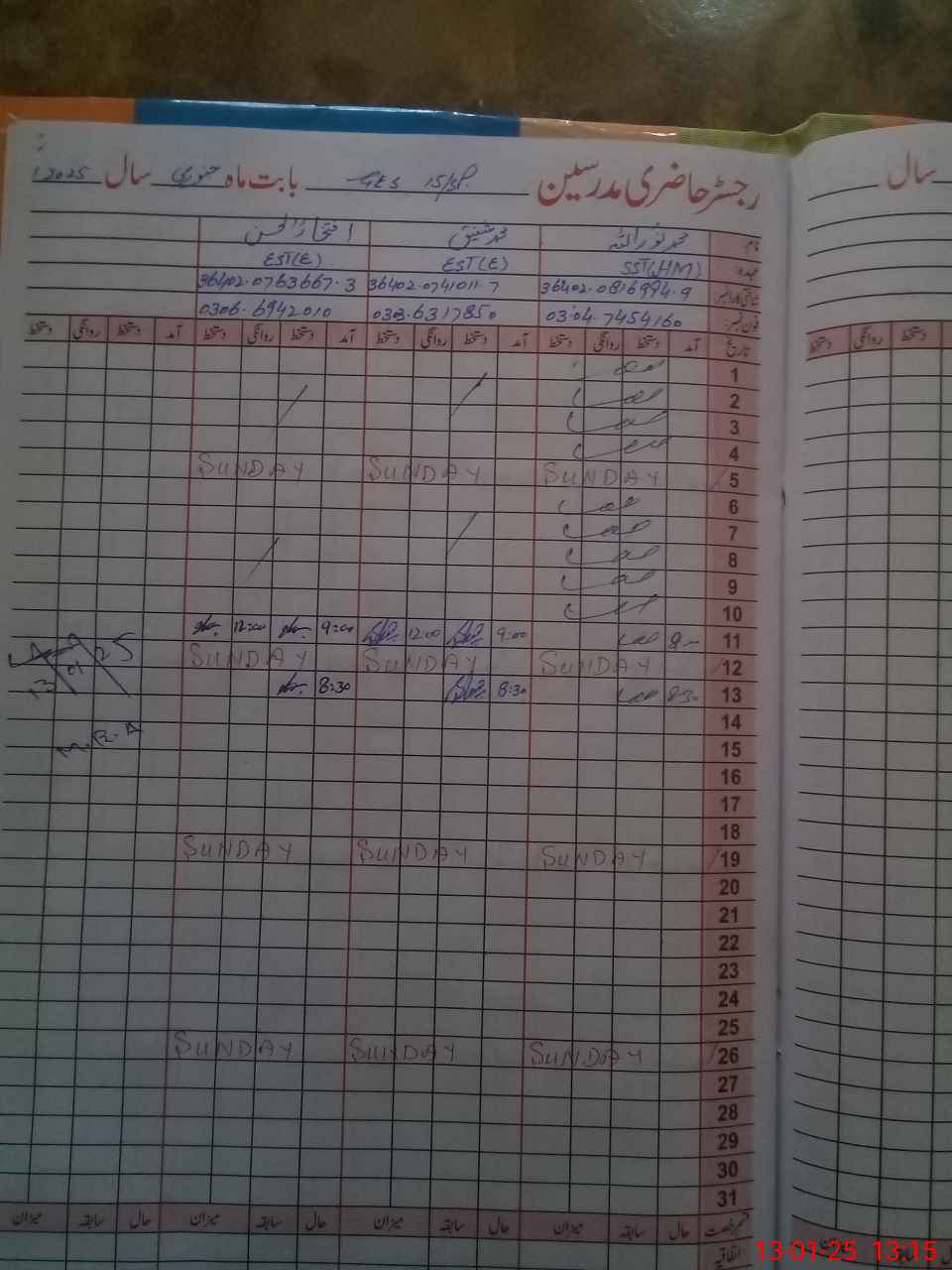 | Name: Kh**** Fa**** Designation: (School Headmaster's/Headmistress's) EST Phone/Cell Number: 03**** |