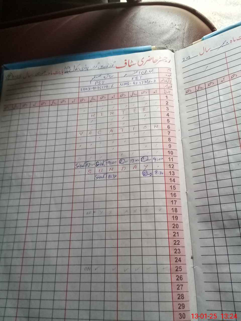 | CNIC | Full Name | Designation | R/C | Absence During Last Calender Month |