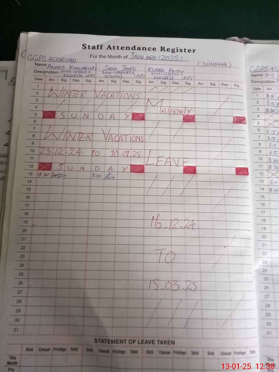 | Leave | Duty | Absent | Maternity | Medical | Ex- Pak |