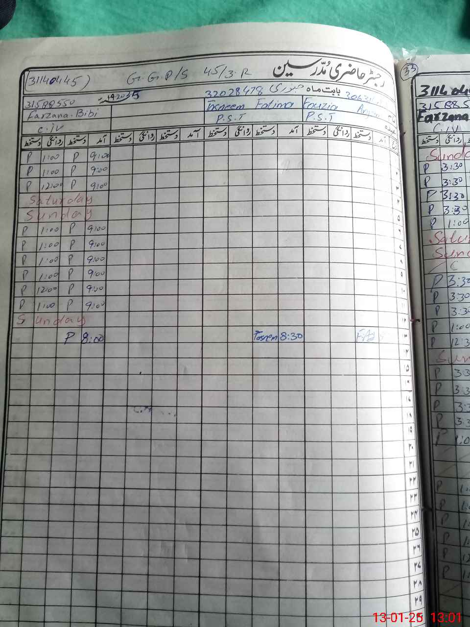 | CNIC | Full Name | Designation | R/C | Absence During Last Calender Month |