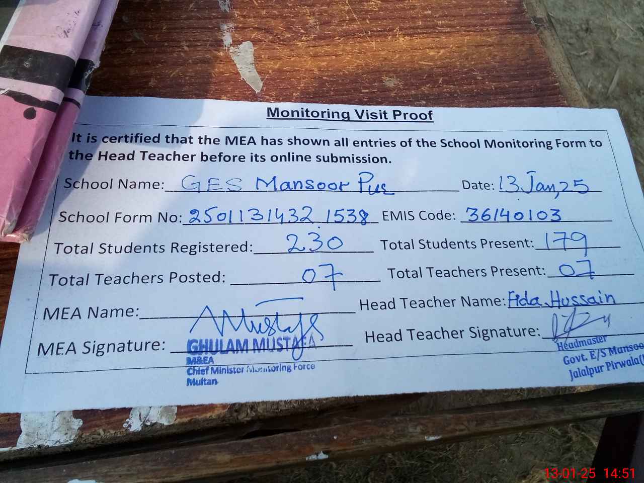 | EMIS Code: 36140103 | Name of School: GES MANSOOR PUR MOUZA MANSOOR PUR TAH. JALALPUR PIRWALA | |||
