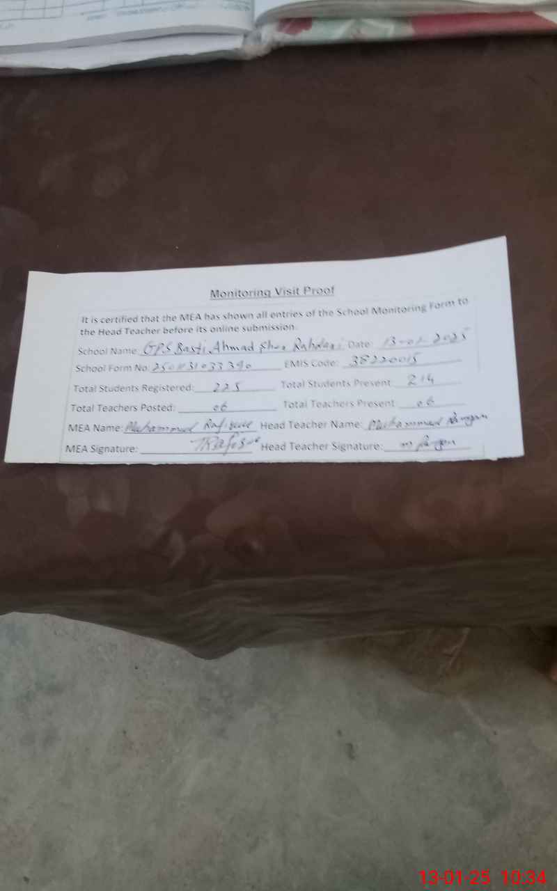 | EMIS Code: 38220015 | Name of School: GPS BASTI AHMED SHER RAHDARI | |||