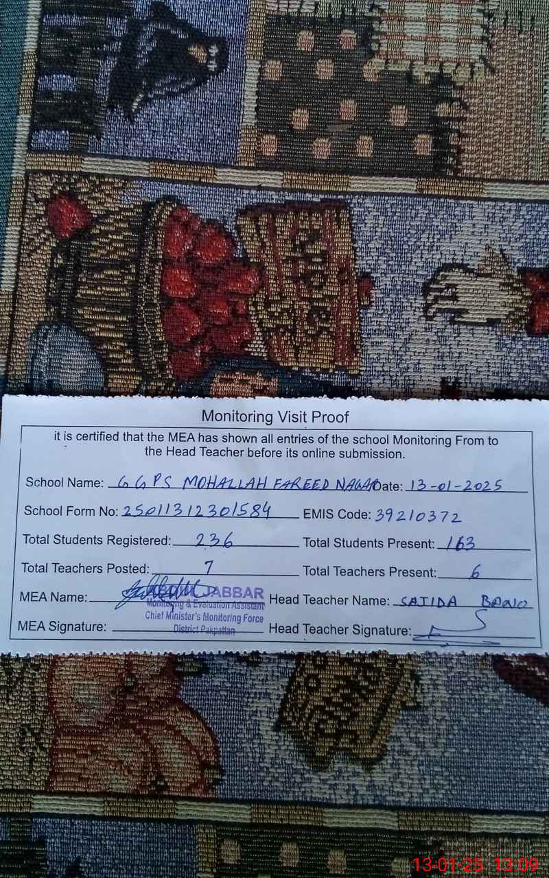 | EMIS Code: 39210372 | Name of School: GGPS MOHALLAH FAREED NAGAR | |||