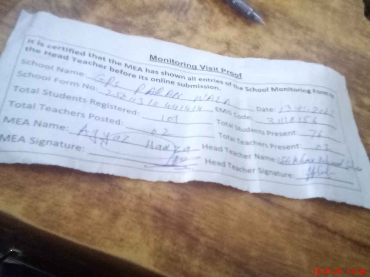 | EMIS Code: 31110156 | Name of School: GPS PARAN WALA | |||