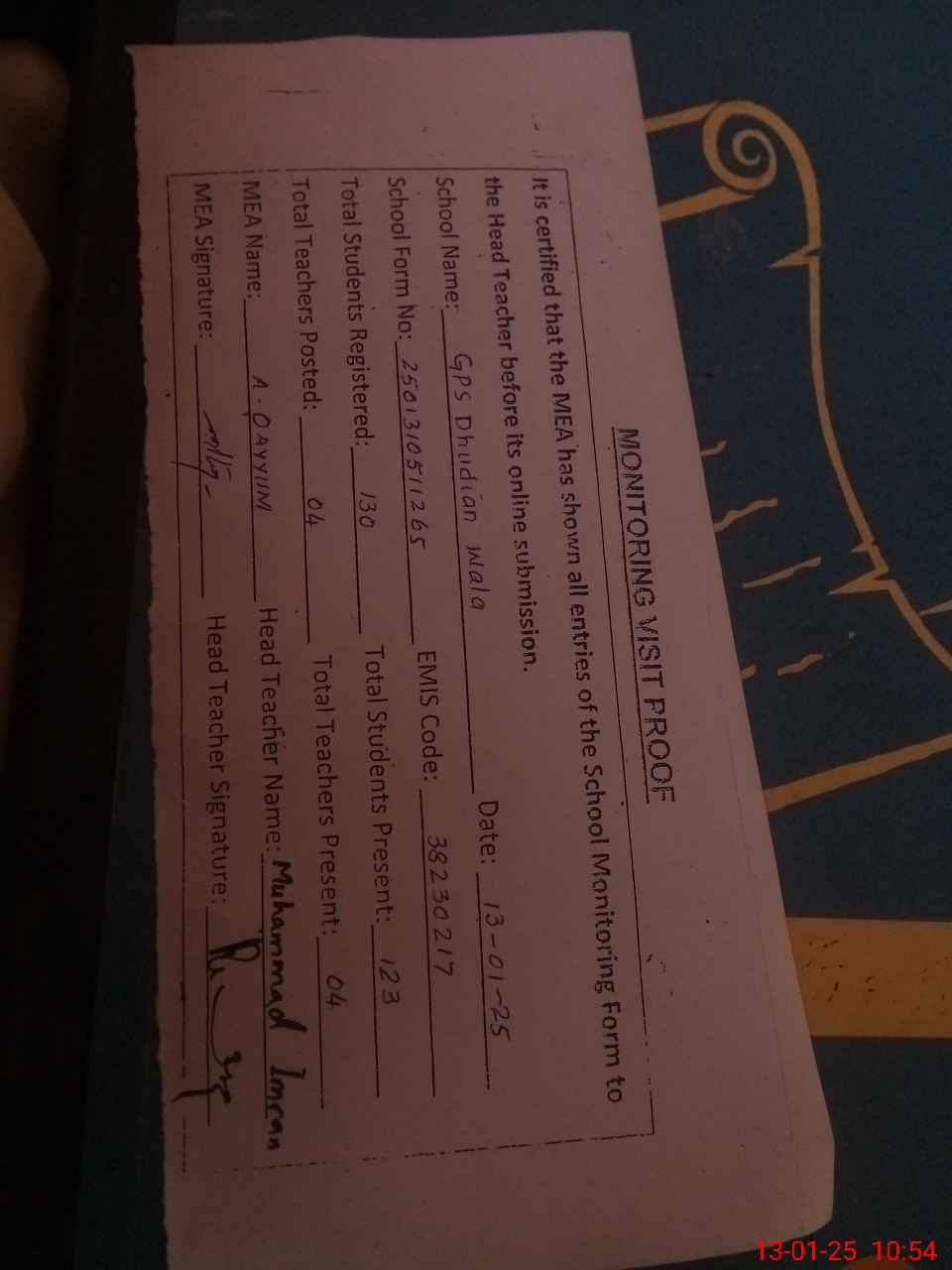 | EMIS Code: 38230217 | Name of School: GPS DHUDIAN WALI | |||