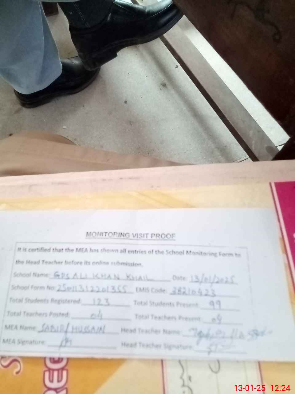 | Attendance Register | Head Teacher | MEA with School | Visit Proof |
