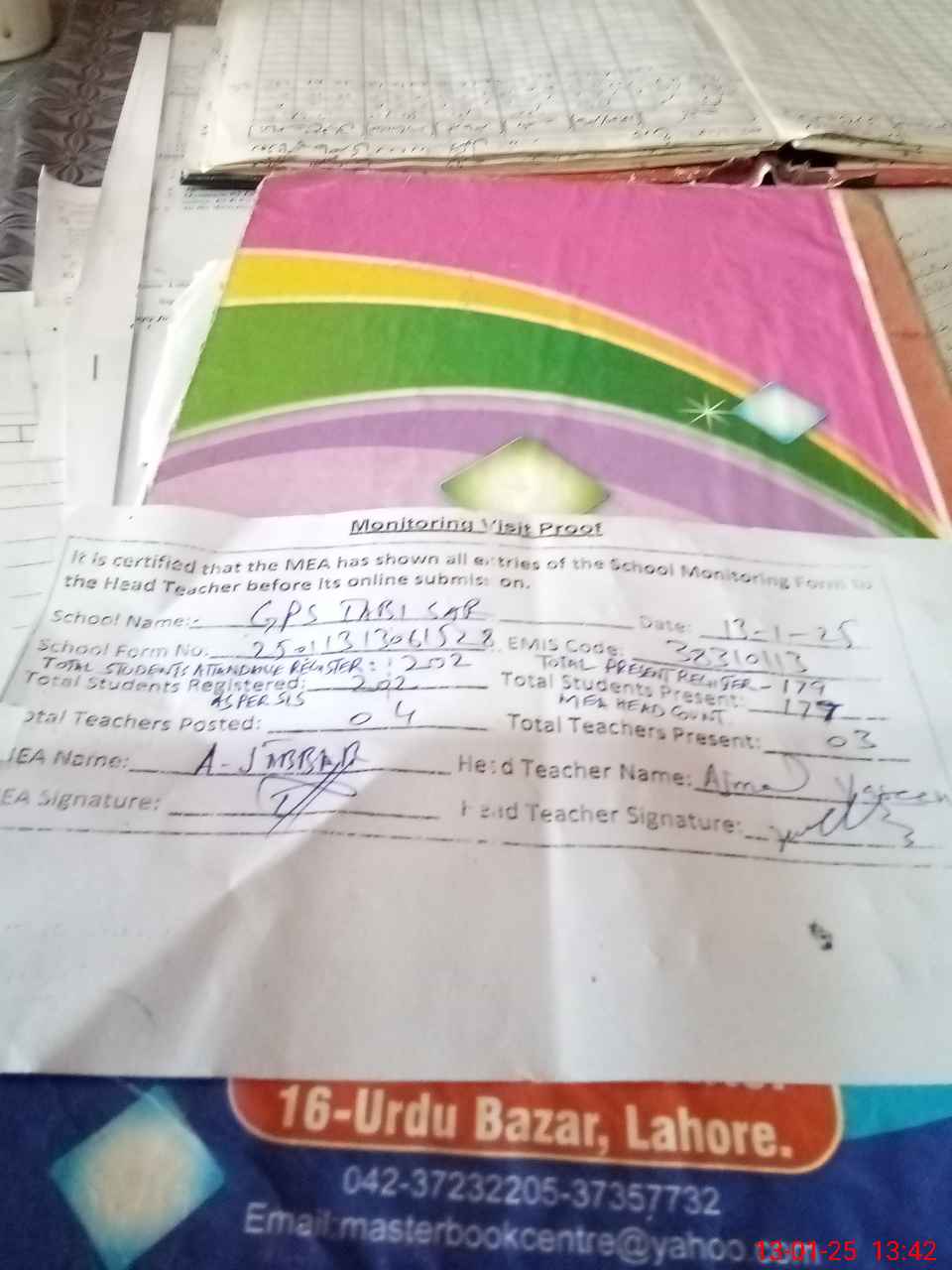 | Attendance Register | Head Teacher | MEA with School | Visit Proof |