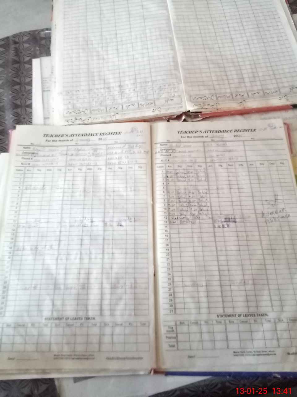 | CNIC | Full Name | Designation | R/C | Absence During Last Calender Month |