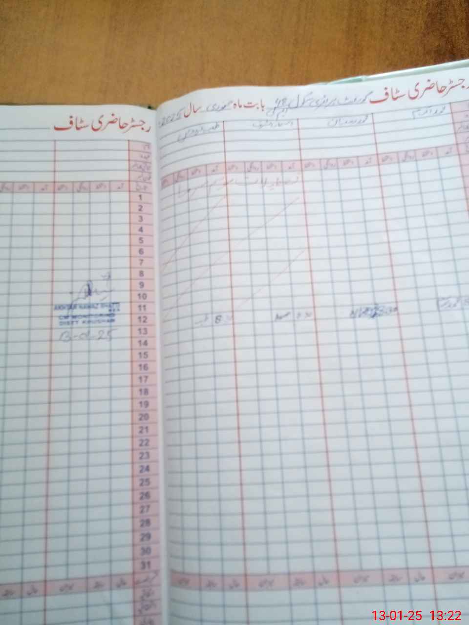 | CNIC | Full Name | Designation | R/C | Absence During Last Calender Month |