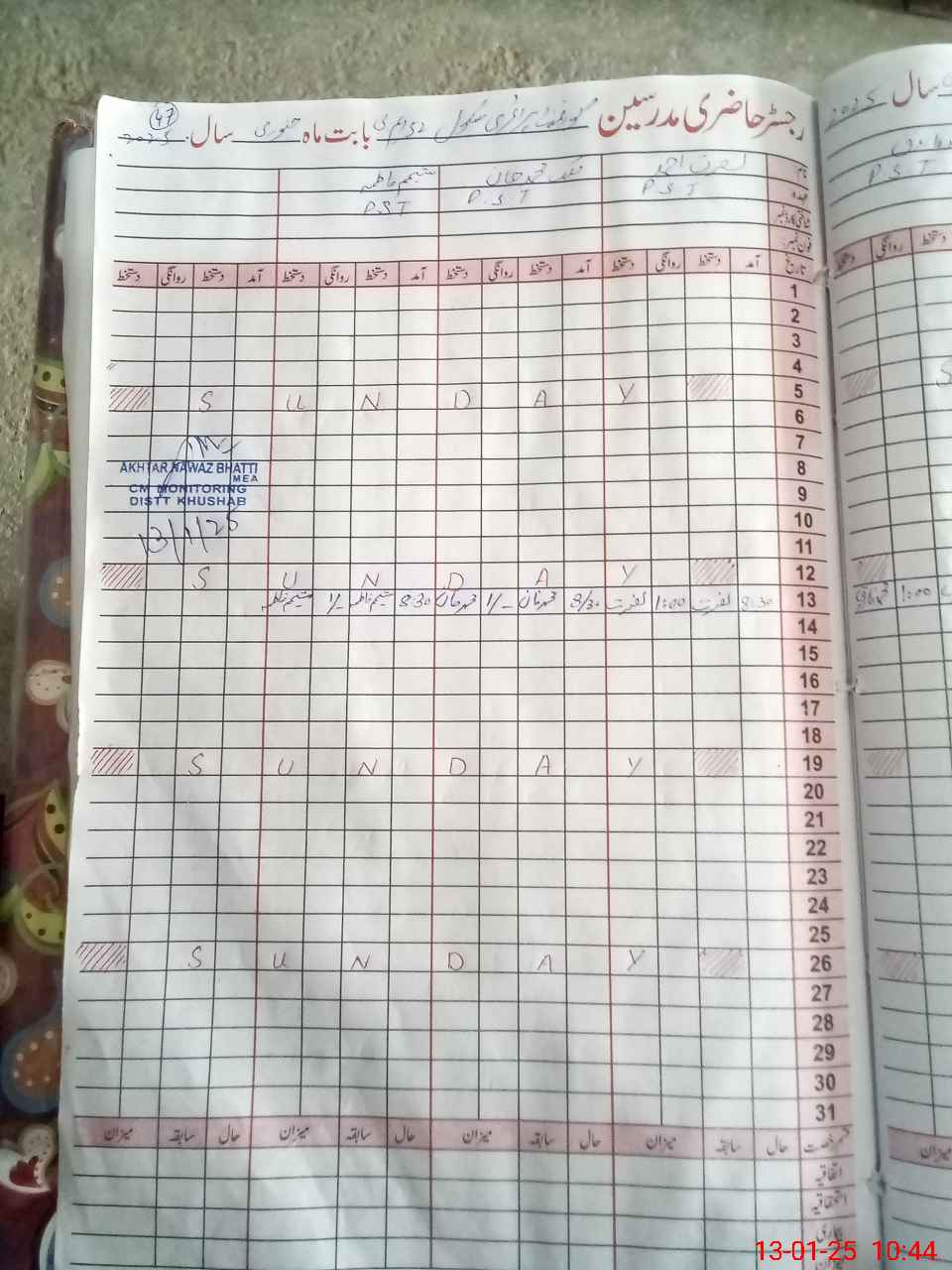 | CNIC | Full Name | Designation | R/C | Absence During Last Calender Month |