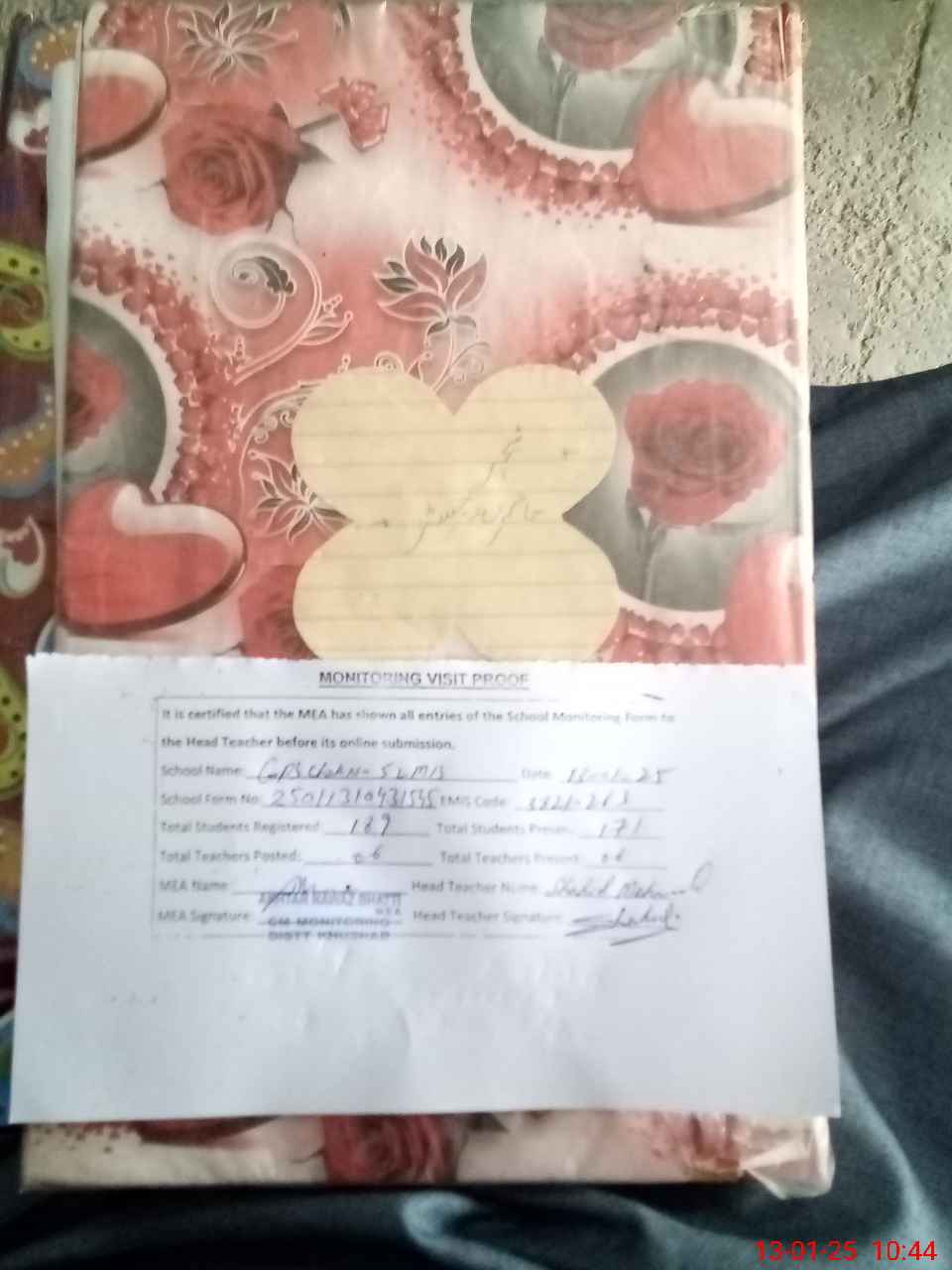 | Attendance Register | Head Teacher | MEA with School | Visit Proof |