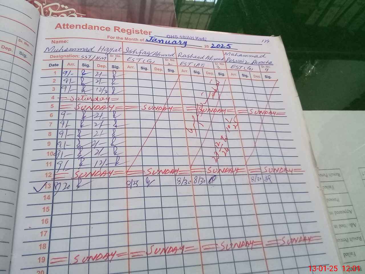 | CNIC | Full Name | Designation | R/C | Absence During Last Calender Month |