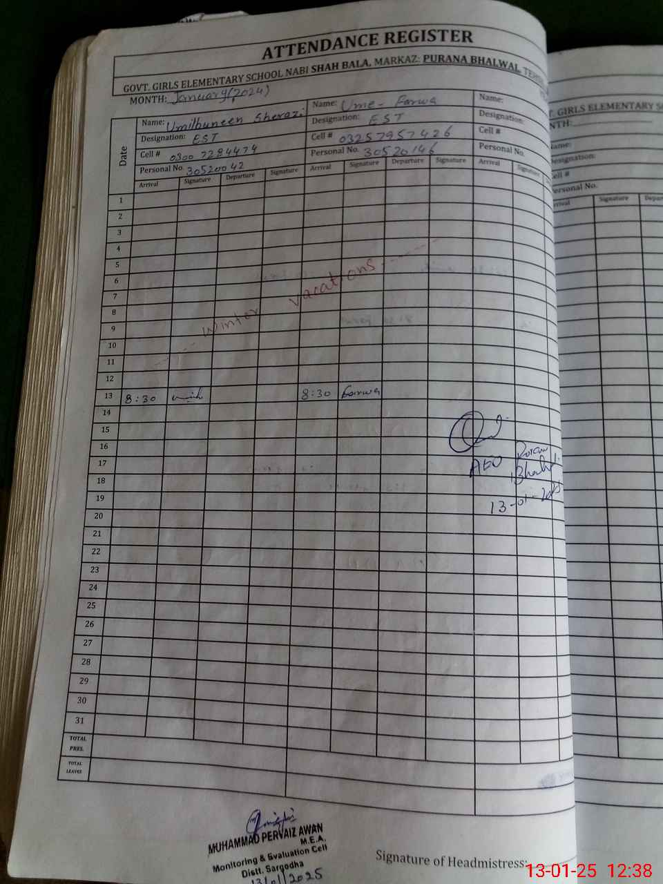 | Name: Um**** Bu**** Sh**** Designation: (School Headmaster's/Headmistress's) EST Phone/Cell Number: 03**** |
