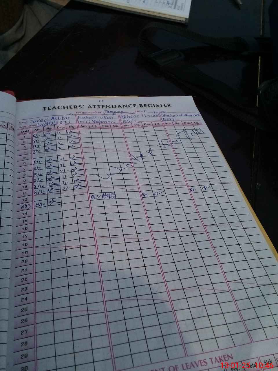 | CNIC | Full Name | Designation | R/C | Absence During Last Calender Month |