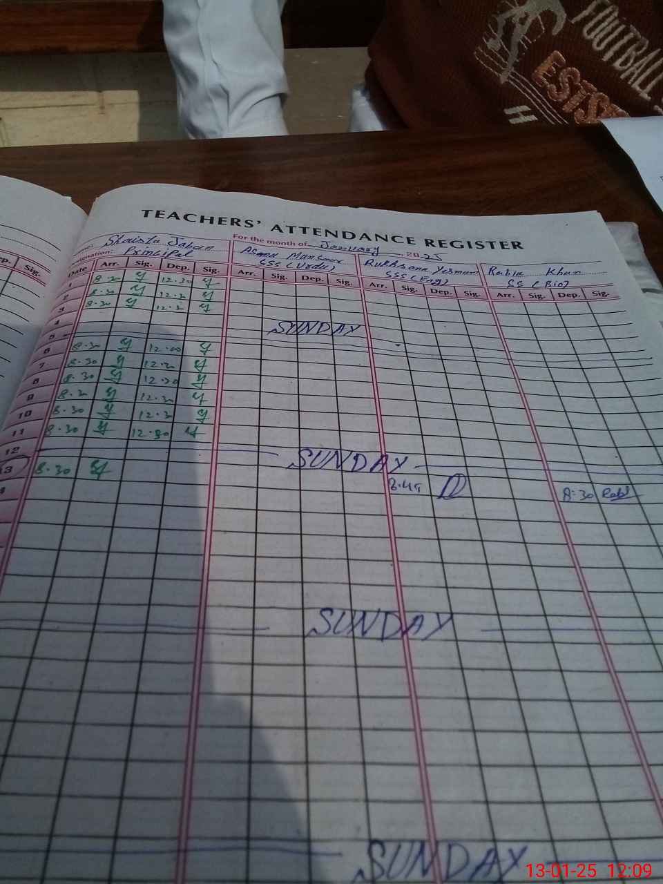| Monitoring Date: 13-01-2025 | Start Time: 13-01-2025 12:01 PM | End Time: 13-01-2025 12:22 PM | Name of MEA: SA**** AK**** | |