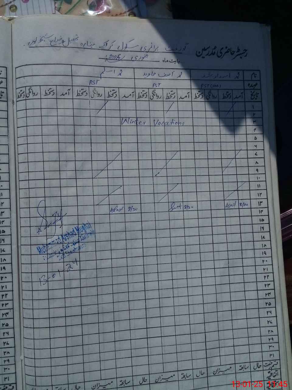 | Name: MA**** AL**** KH**** Designation: (School Headmaster's/Headmistress's) PST Phone/Cell Number: 03**** |