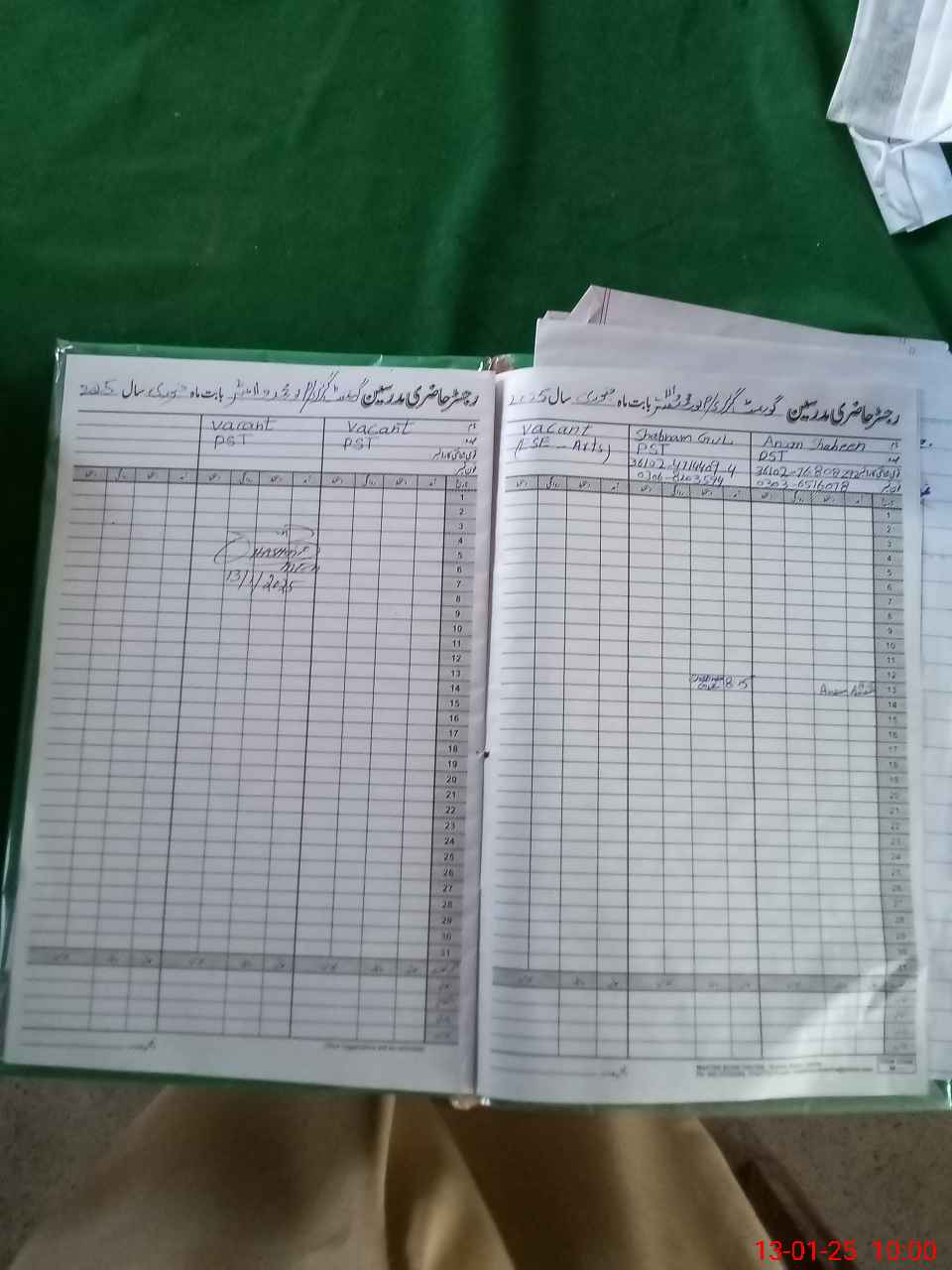 | CNIC | Full Name | Designation | R/C | Absence During Last Calender Month |
