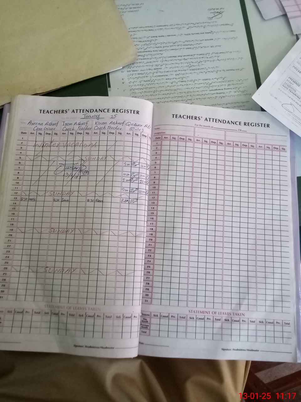 | CNIC | Full Name | Designation | R/C | Absence During Last Calender Month |