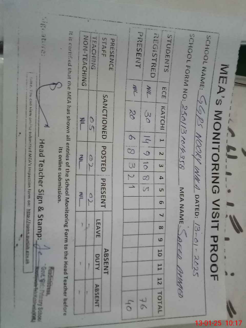 | Certified that this School was Inspected by the Undersigned MEA/DMO Today and the Information Stated Above is as Per Record. | |||||