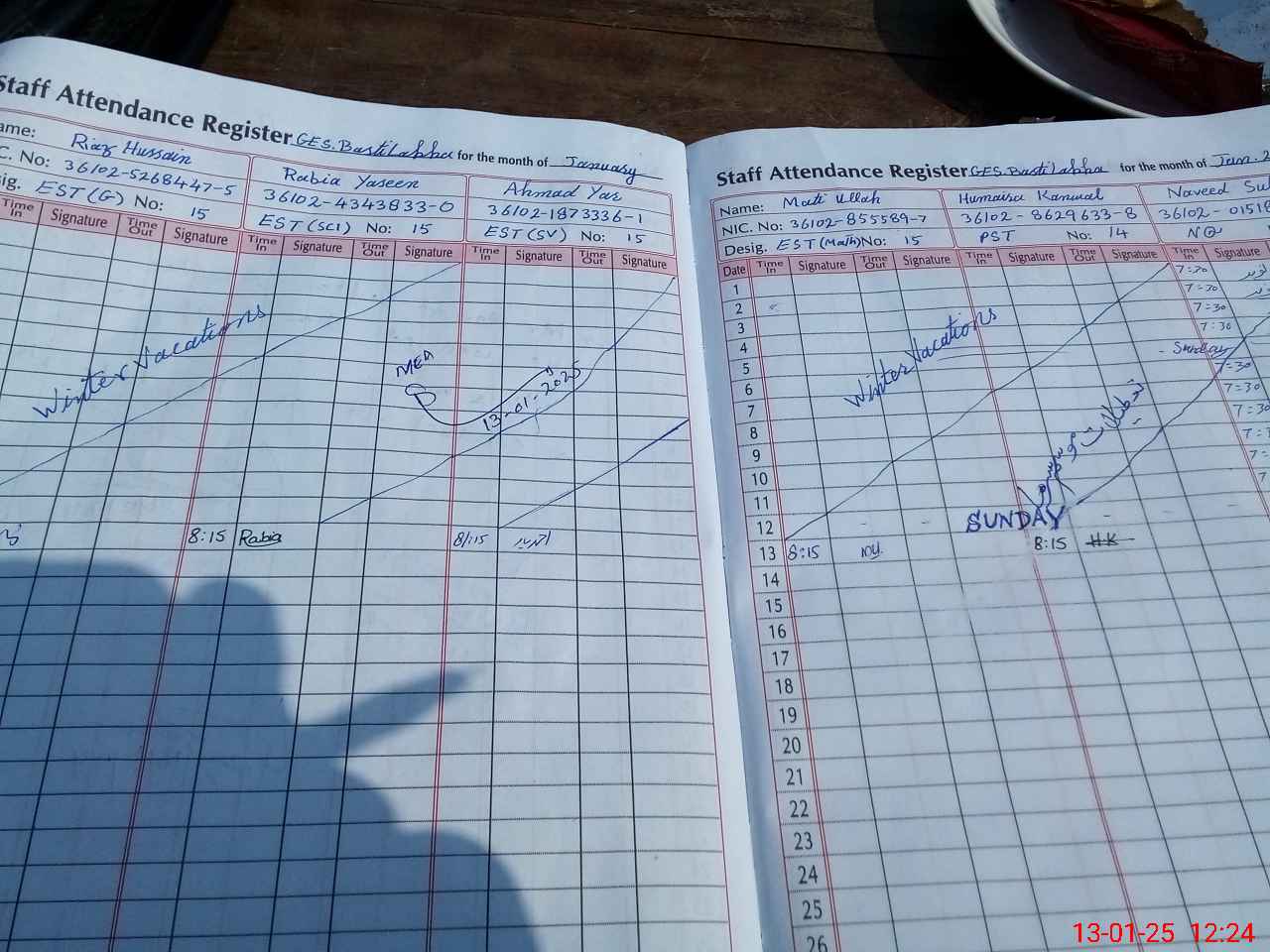 | CNIC | Full Name | Designation | R/C | Absence During Last Calender Month |