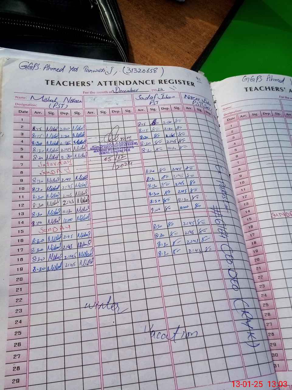 | Name: MI**** NO**** Designation: (School Headmaster's/Headmistress's) PST Phone/Cell Number: 03**** |