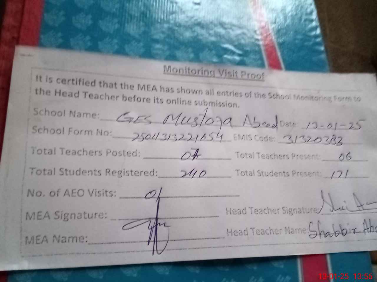 | EMIS Code: 31320383 | Name of School: GES MUSTAFA ABAD | |||