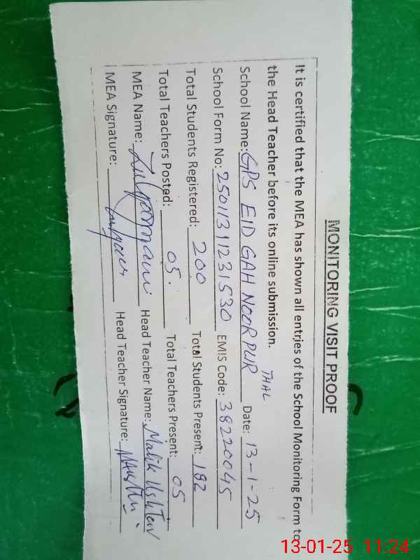 | EMIS Code: 38220045 | Name of School: GPS EID GAH NOOR PUR | |||