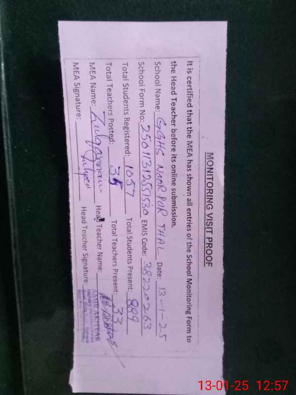 | EMIS Code: 38220263 | Name of School: GGHS NOOR PUR THAL | |||