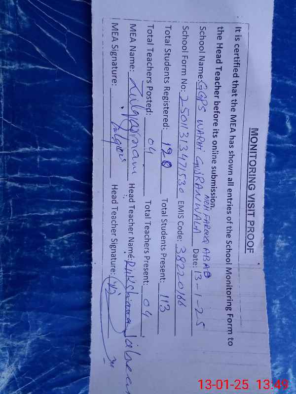 | EMIS Code: 38220166 | Name of School: GGPS WARHI GUJRAN WALA MOHALLA FAROOQ ABAD | |||