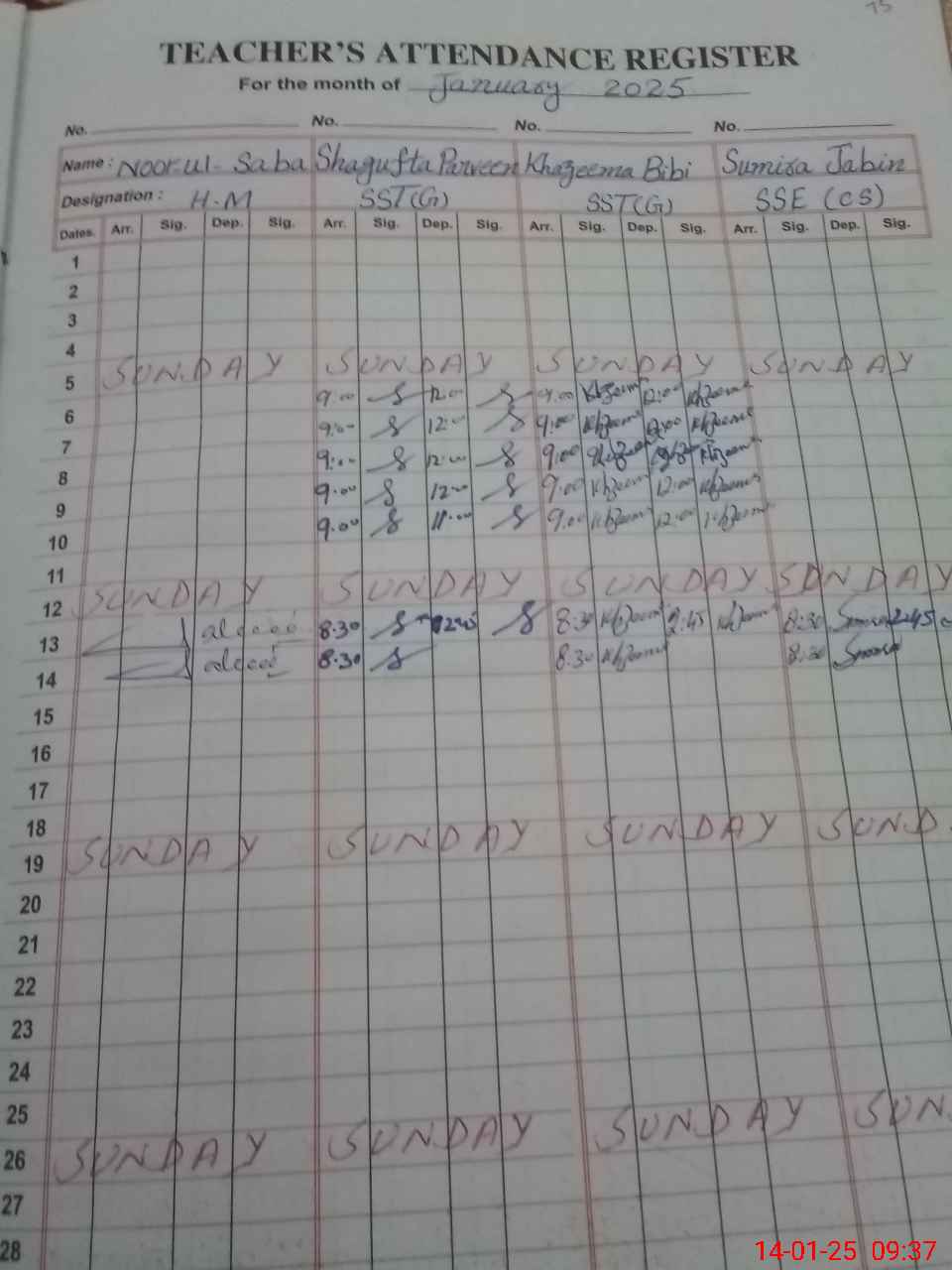 | Total no. of Classrooms: 12 No. of Classrooms Used for Teaching: 10 No. of Classrooms Storing Old Furniture, FTBs, etc: 0Comments if Any: Nil |