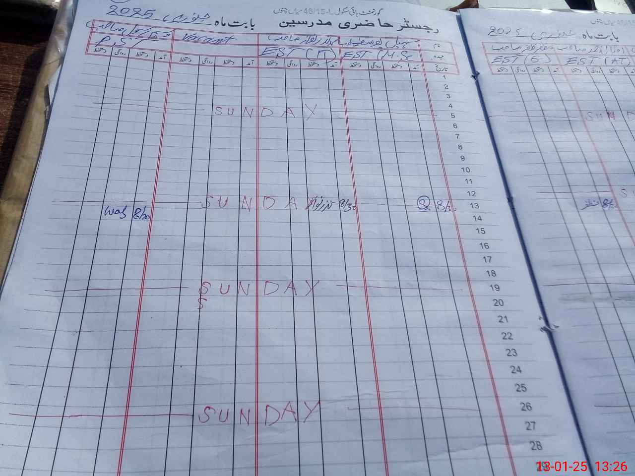 | CNIC | Full Name | Designation | R/C | Absence During Last Calender Month |