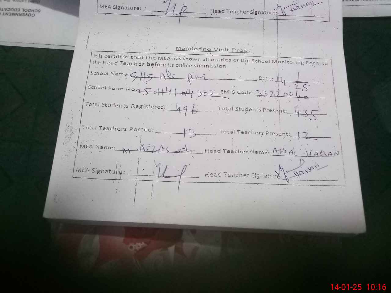 | EMIS Code: 33220040 | Name of School: GHS ALI PUR | |||