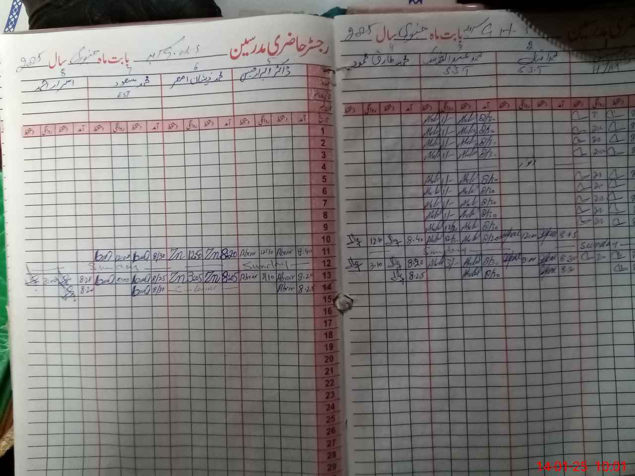 | CNIC | Full Name | Designation | R/C | Absence During Last Calender Month |