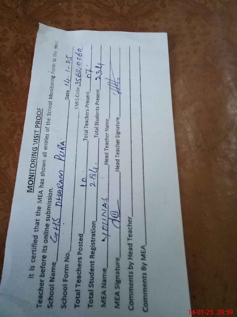 | EMIS Code: 35620060 | Name of School: GHS DHARAM PURA | |||