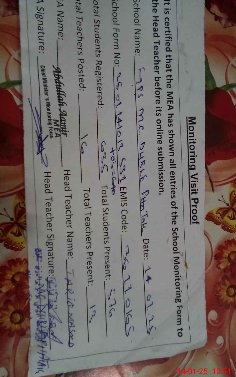 | EMIS Code: 36110165 | Name of School: GPS MC DOUBLE PHATAK VEHARI ROAD MULTAN | |||