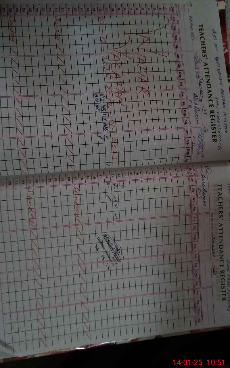 | Attendance Register | Head Teacher | MEA with School | Visit Proof |