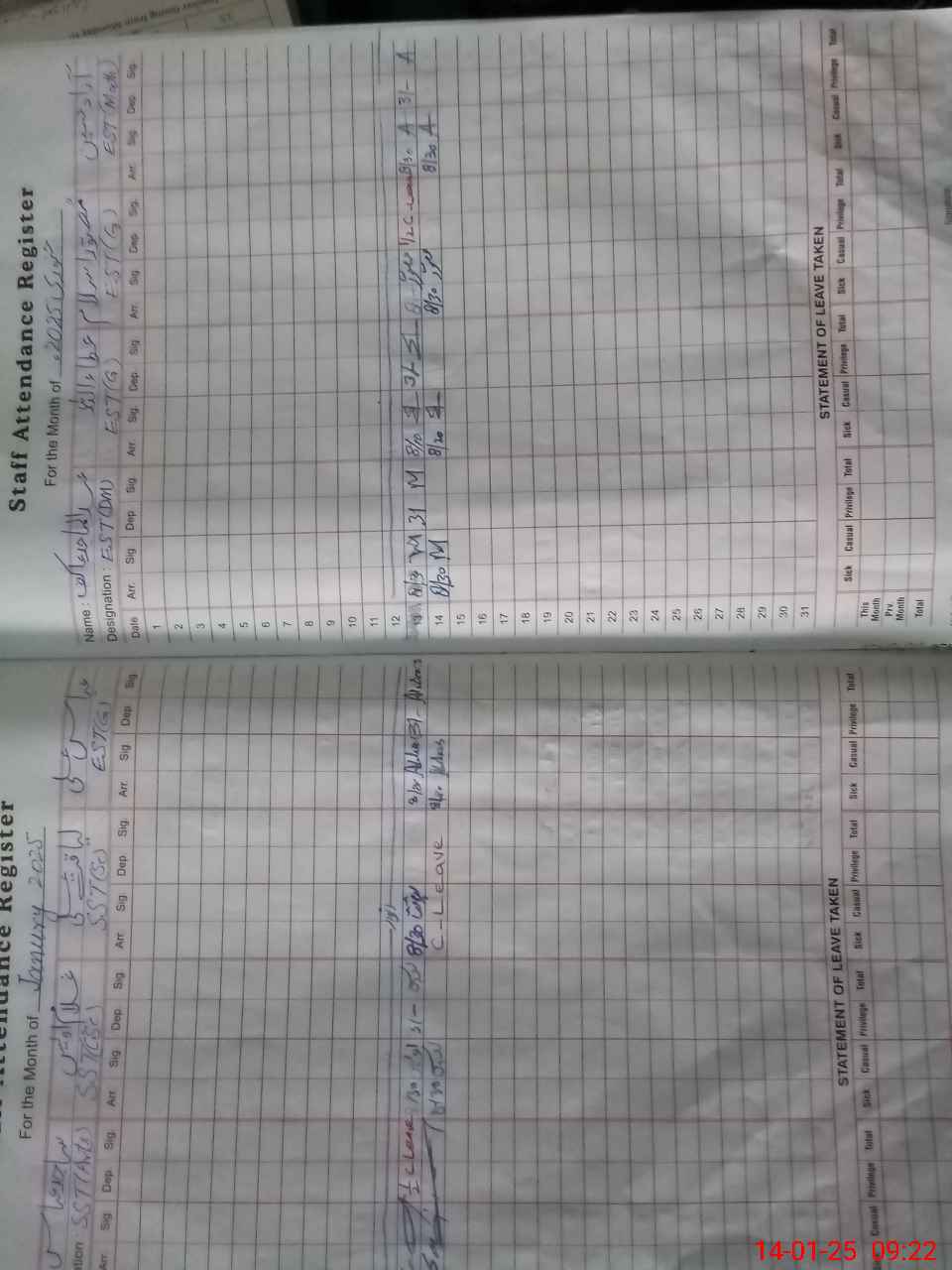 | CNIC | Full Name | Designation | R/C | Absence During Last Calender Month |