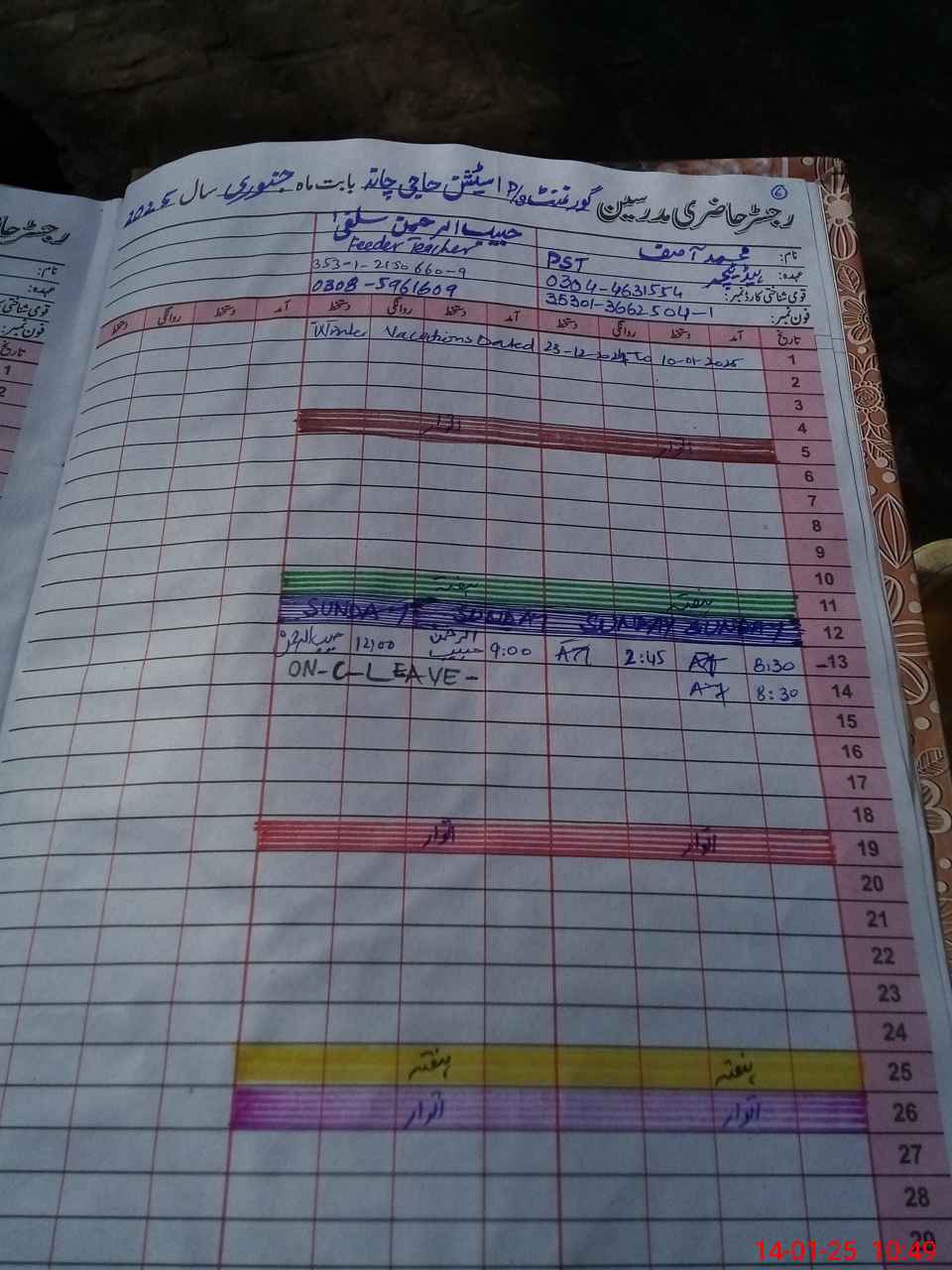 | CNIC | Full Name | Designation | R/C | Absence During Last Calender Month |