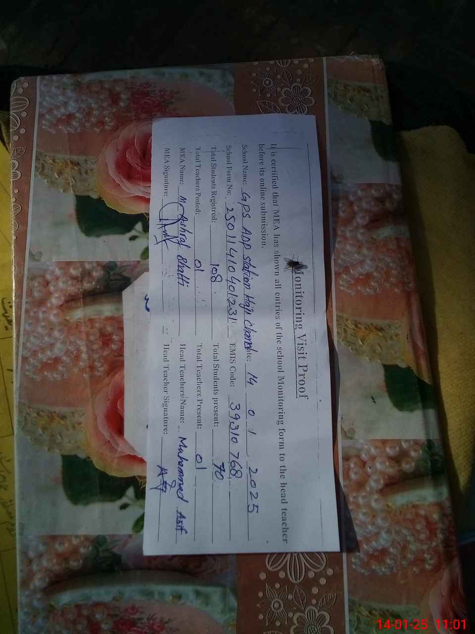 | Attendance Register | Head Teacher | MEA with School | Visit Proof |