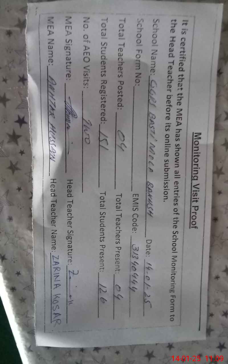 | EMIS Code: 31340444 | Name of School: GGPS BASTI MOLA BUKHSH | |||