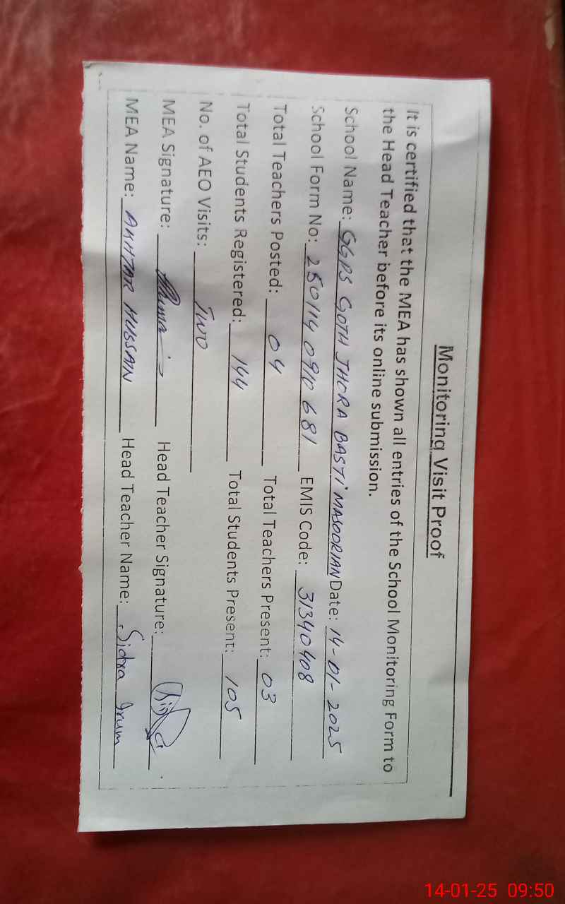 | EMIS Code: 31340408 | Name of School: GGPS GOTH JOHRA BASTI MASORIAN | |||