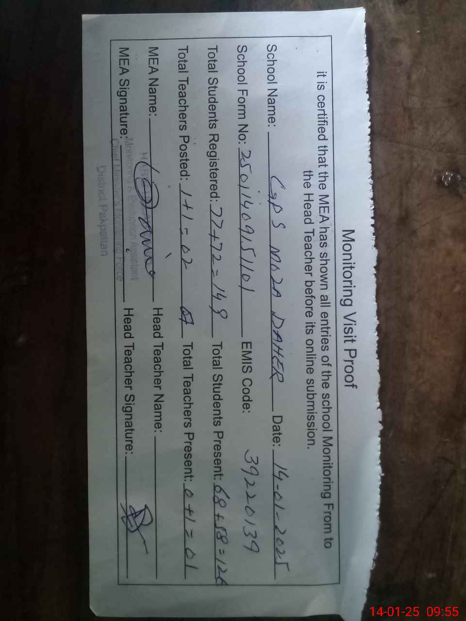 | EMIS Code: 39220139 | Name of School: GPS MOZA DAHER | |||