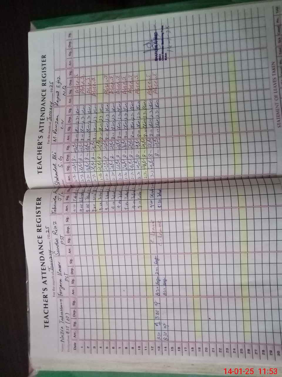 | 36**** | Ka**** Ej**** | NAIB QASID | Regular | 0 | 31 | 0 | 0 | 0 | 0 | 0 | 0 | 0 | Absent (Un-Authorized) |