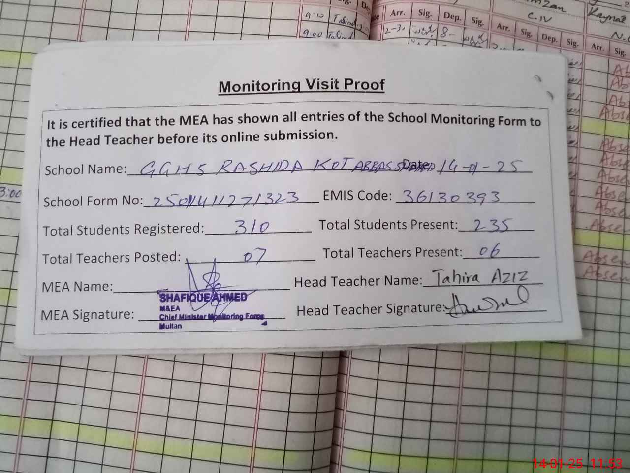 | EMIS Code: 36130393 | Name of School: GGHS RASHIDA, KOT ABBAS SHAHEED | |||