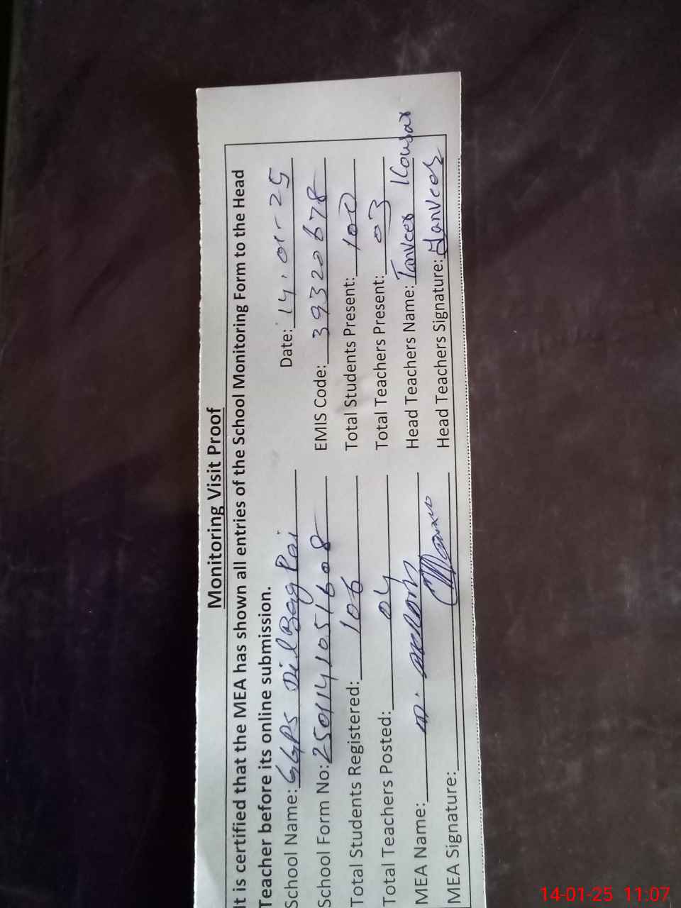 | EMIS Code: 39320678 | Name of School: GGPS DIL BAGH RAI | |||