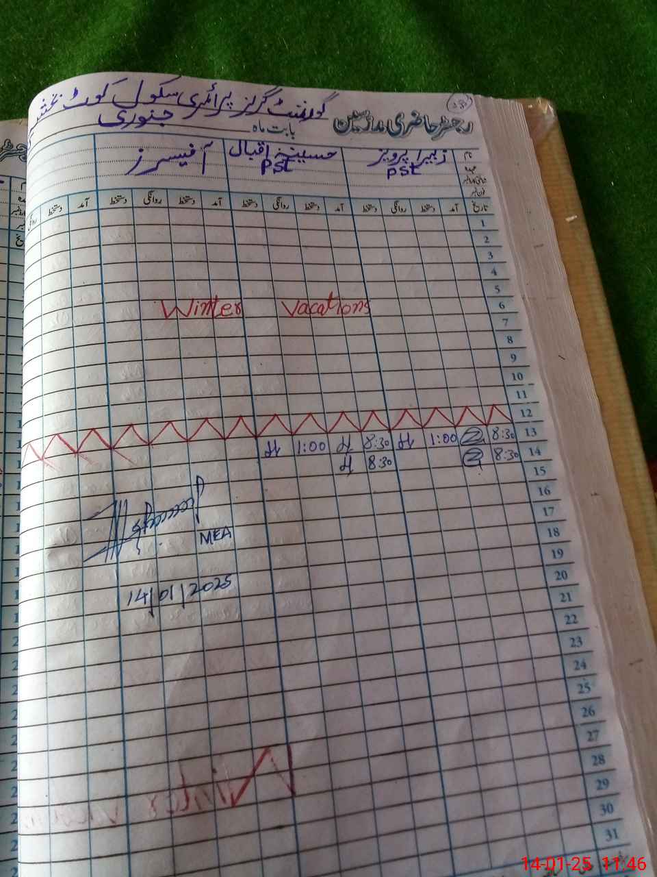 | Monitoring Date: 14-01-2025 | Start Time: 14-01-2025 11:35 AM | End Time: 14-01-2025 12:12 PM | Name of MEA: MU**** AS**** | |