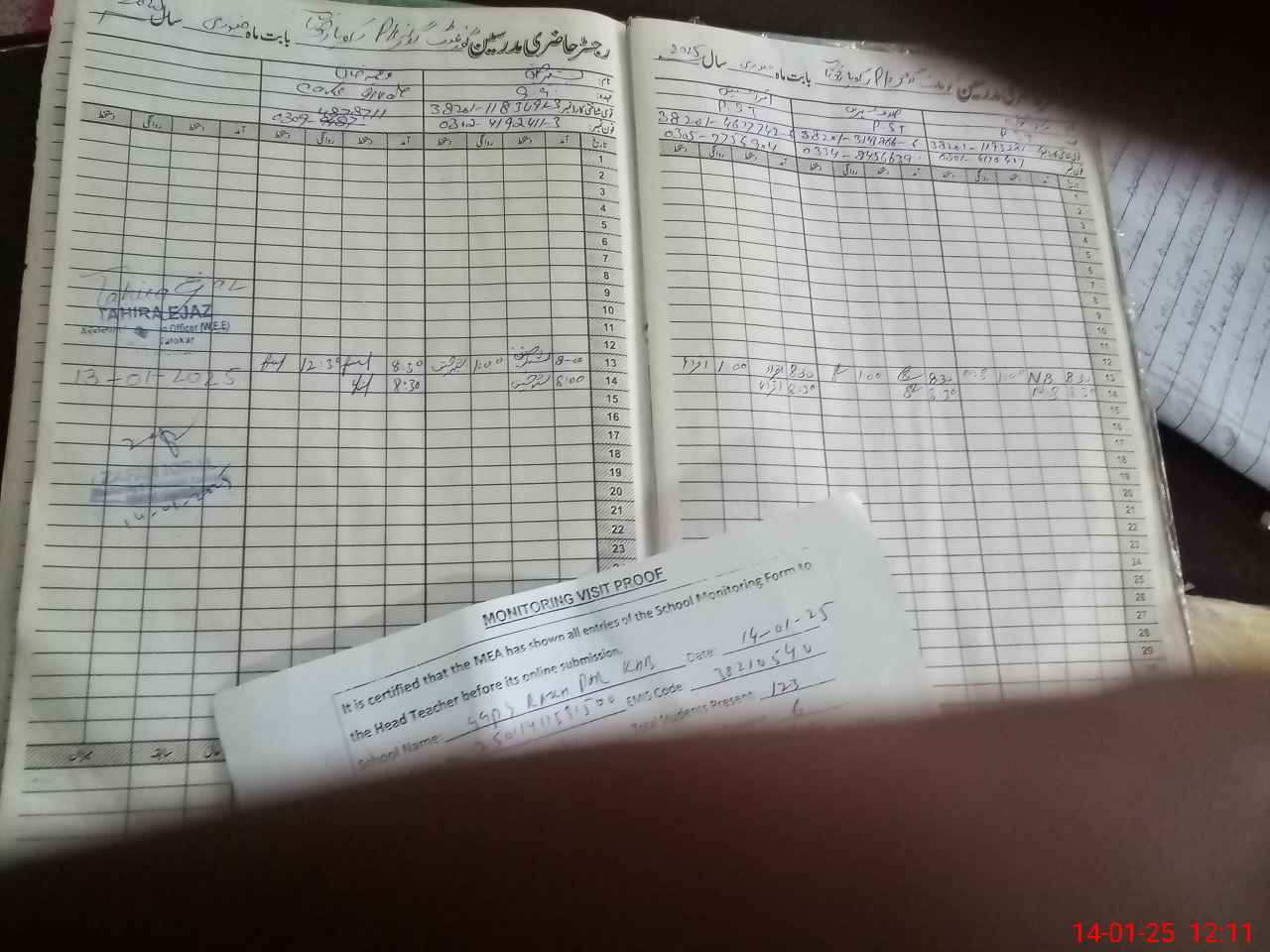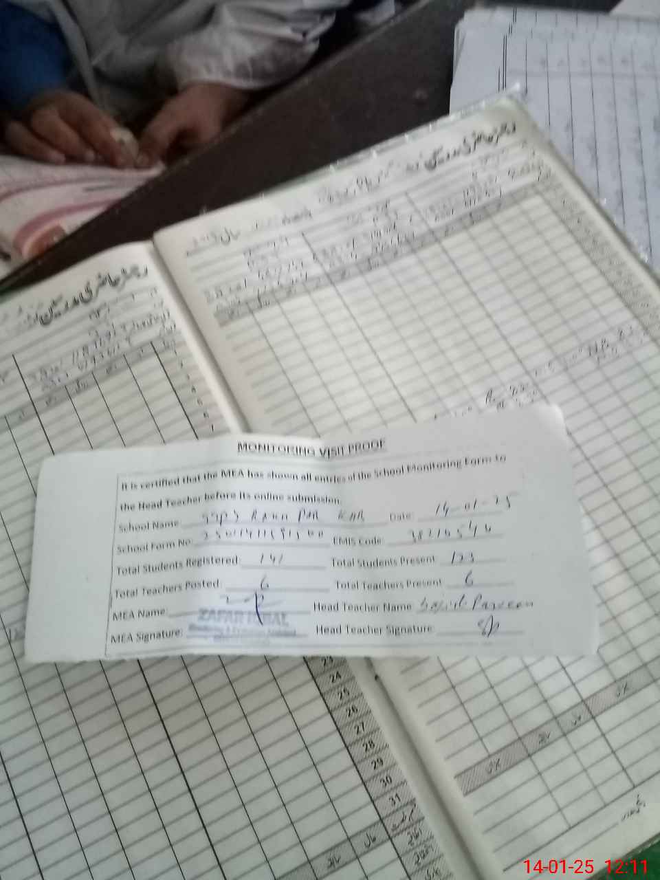 | Attendance Register | Head Teacher | MEA with School | Visit Proof |