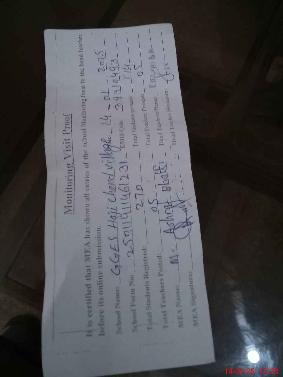 | EMIS Code: 39310493 | Name of School: GGES HAJI CHAND VILLAGE | |||