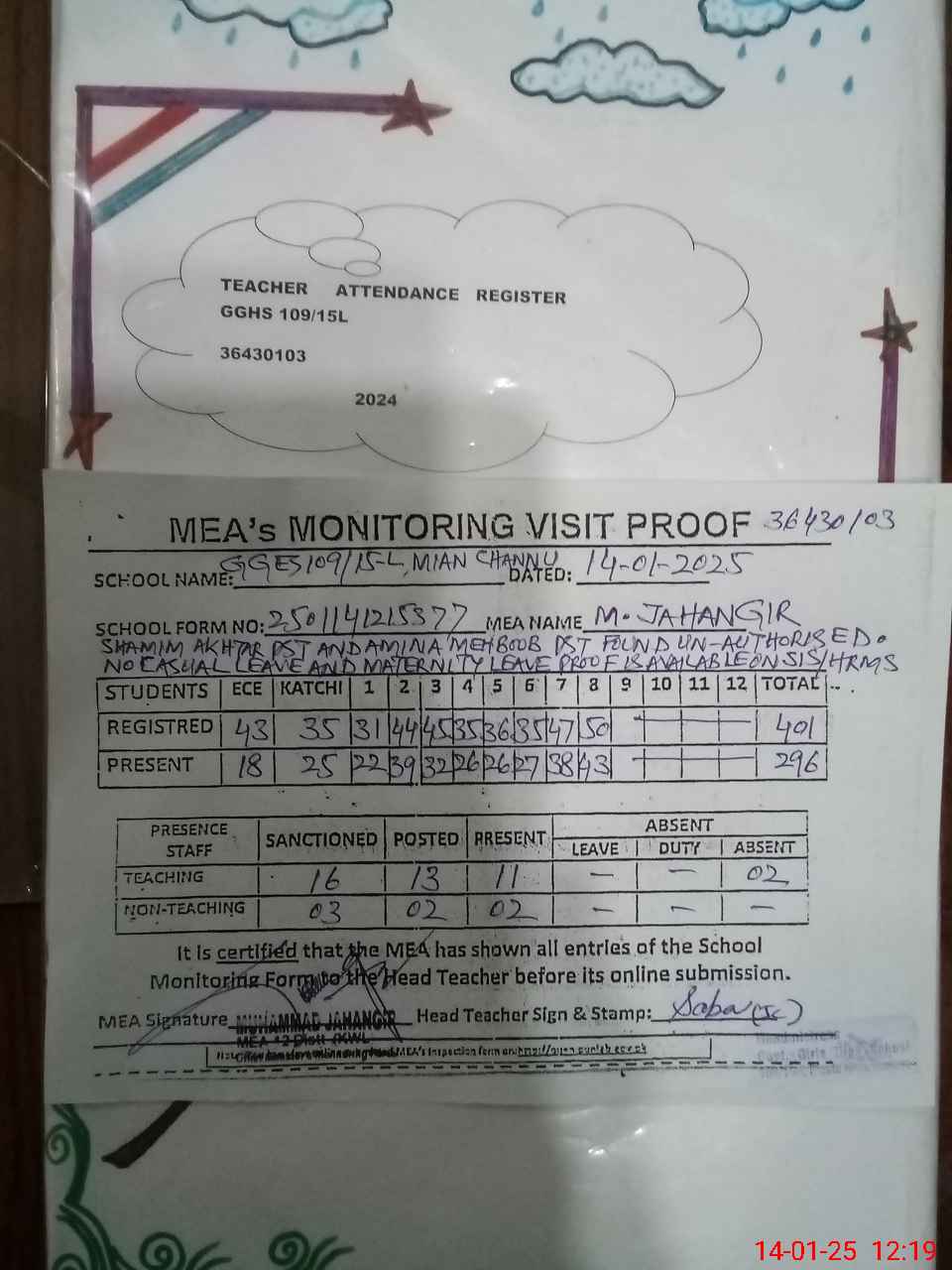 | EMIS Code: 36430103 | Name of School: GGHS 109/15-L, MIAN CHANNU | |||